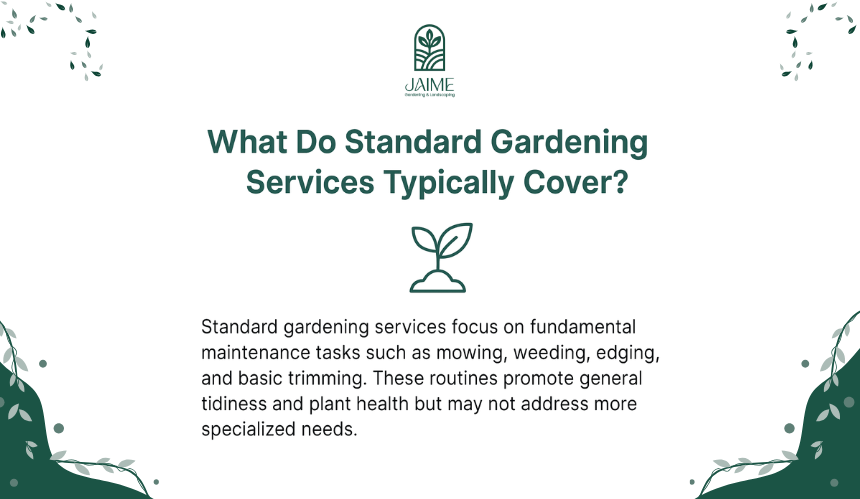 Standard gardening services often include weeding, trimming, mowing, shaping shrubs, fertilizing, mulching, and basic seasonal cleanup. These tasks maintain the foundation of a healthy yard by supporting plant growth and preventing invasive species from overtaking garden beds. Many homeowners benefit from recurring visits that ensure the garden stays visually appealing and structurally balanced throughout each season.