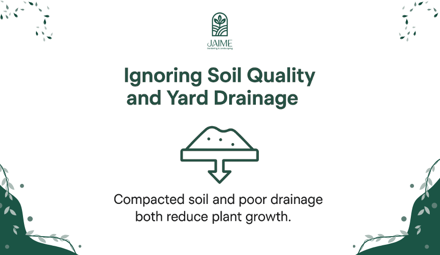Improper drainage causes standing water, root rot, and soil erosion. Areas with slopes or low points often accumulate runoff, which can damage lawns and weaken plants. Addressing drainage early helps avoid long-term landscape instability and reduces the risk of repeated plant failure during wet seasons.